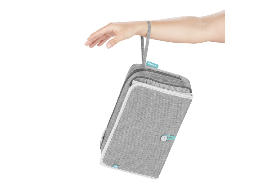 Todos los elementos del cambiador nómada NomadCare son plegables y fácilmente almacenables en el bolso cambiador que se puede llevar a todas partes gracias a su pequeña correa para poner en la muñeca. ¡Un auténtico kit de viaje !